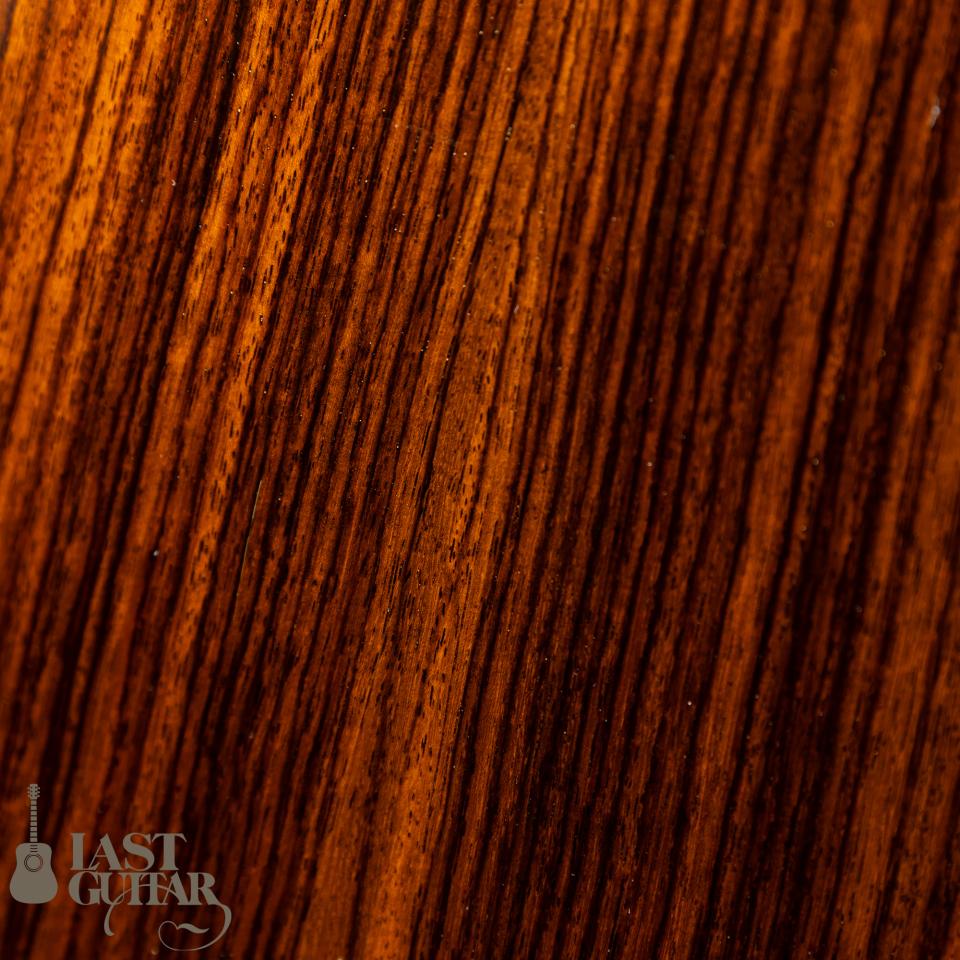 シトカスプルースTop、インディアンローズウッドSide & Back、ホンジュラスマホガニーNeck、エボニー指板・ブリッジの他、力木のシトカスプルース、メイプルバインディングに至るまで、木部素材をほぼ全て、工房で15年以上寝かせた「枯れ材」が採用されているのが特徴です。ブレイシングは、岩根さんお馴染みのダブルXのスキャロップスタイルで、しっかりした出音と強度を兼ね備えています。0フレット仕様もお馴染みのスペックです。