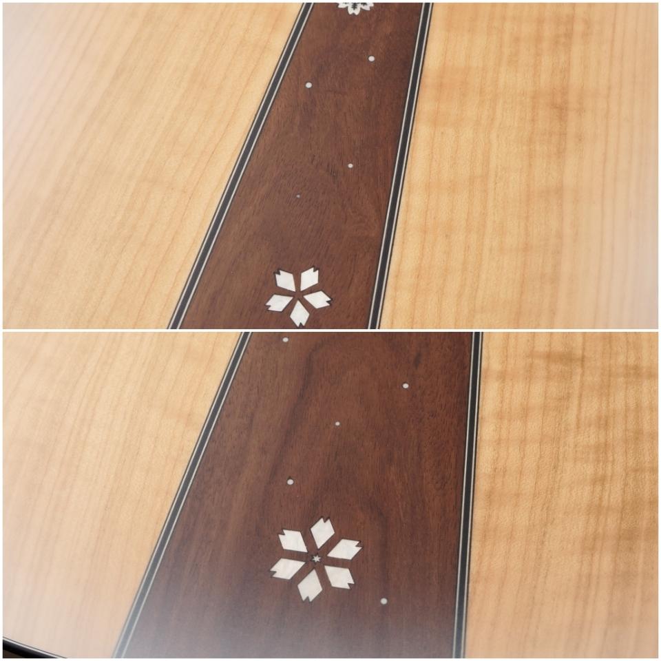 ヘッドと指板には、桜材と“舞い降る雪”を組み合わせたデザインを採用しています。