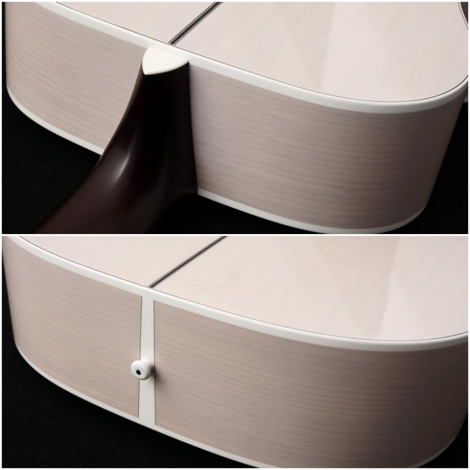 フォワードシフトよりも5mmほどブリッジ寄りになっていることにより、トップ板の安定性も考慮された設計が行われています。