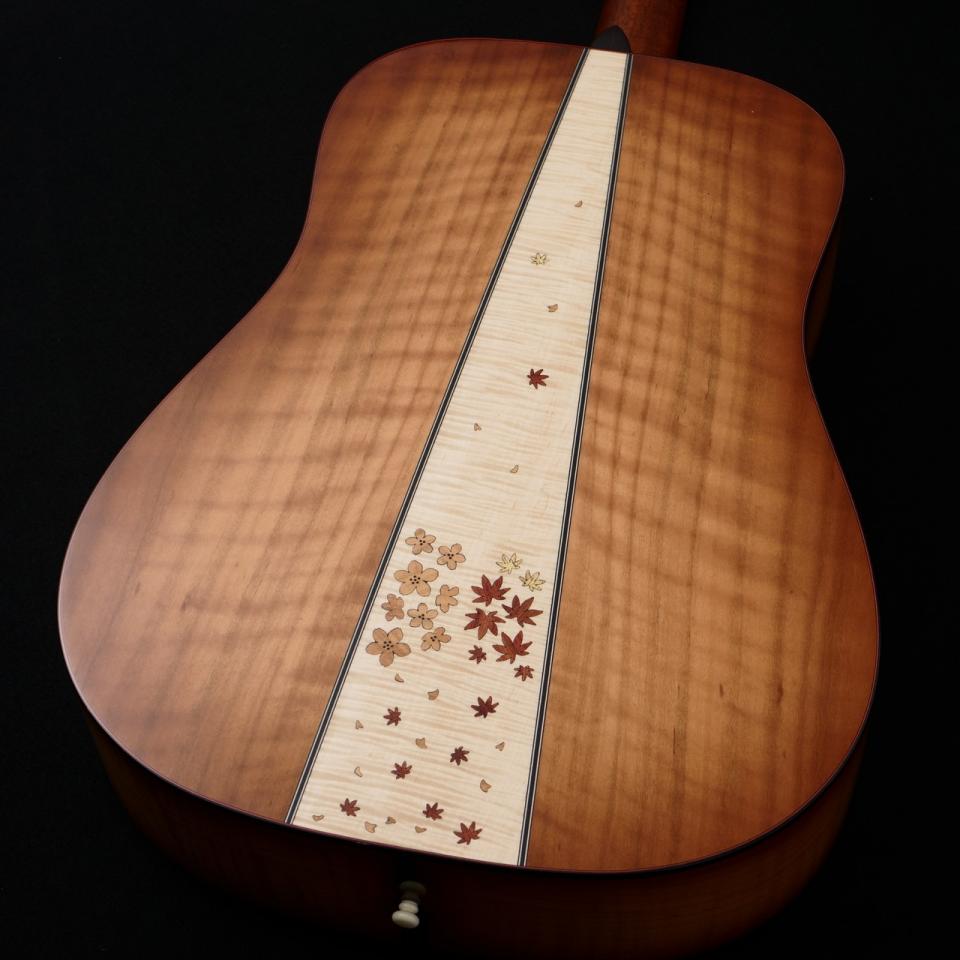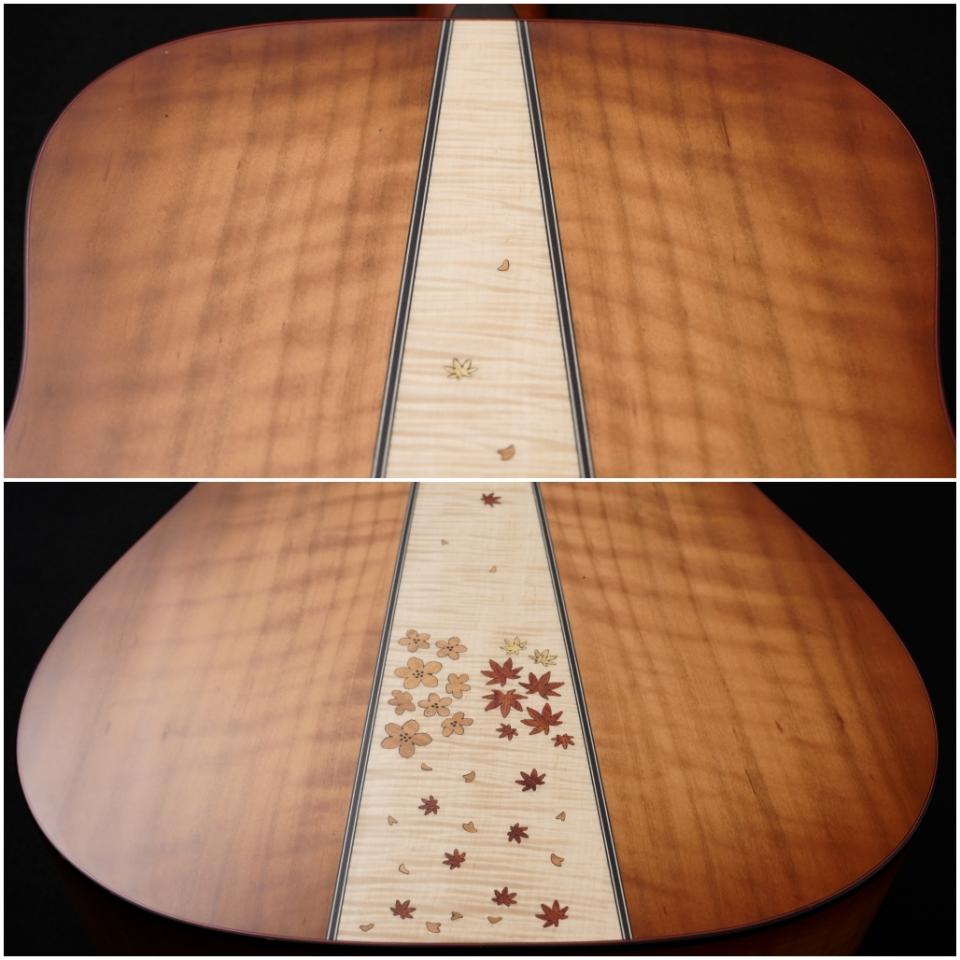 ピックガードには桜の花びらを模し、秋へと移ろう色彩を表現するためにべっ甲素材を使用。