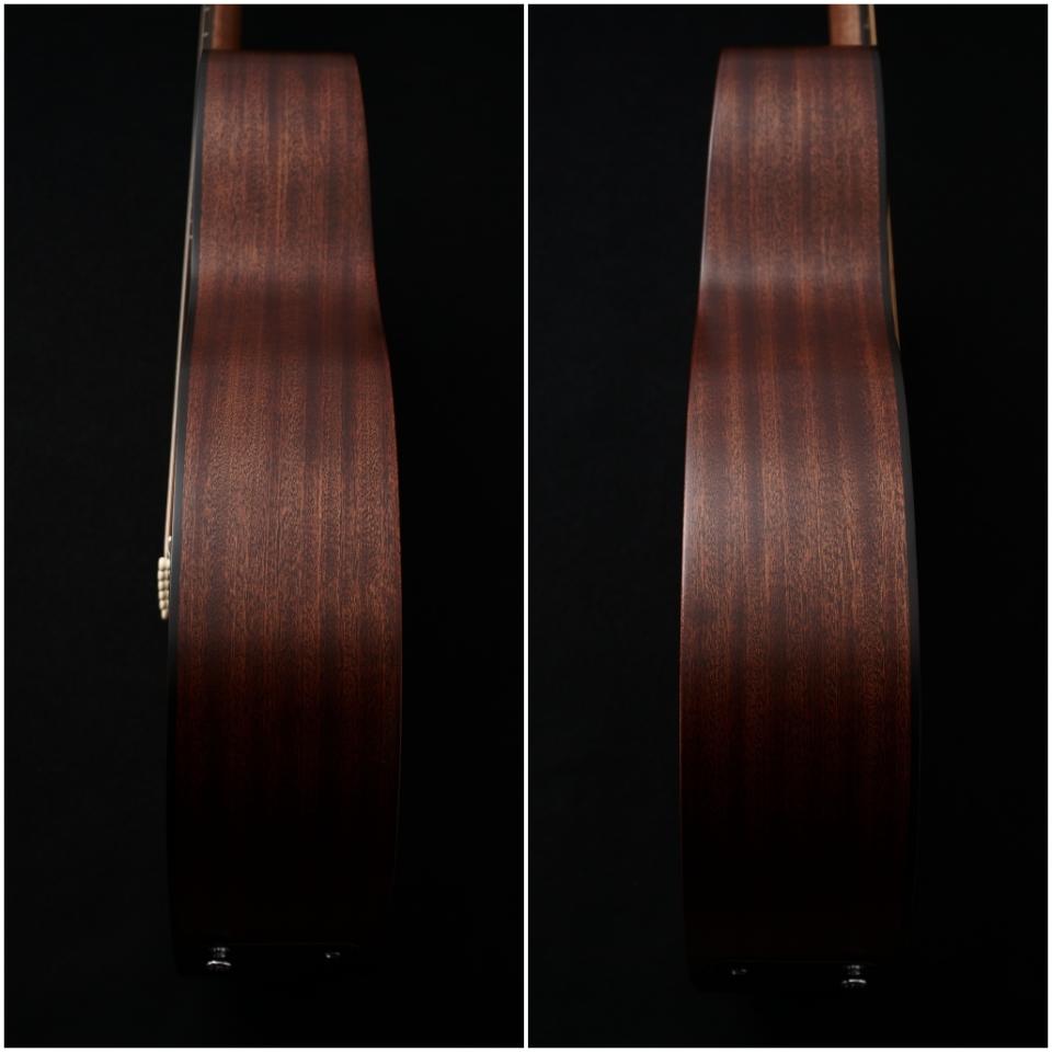 従来の000-10Eはオールサペリボディのみでしたが、本モデルはトップにスプルース、サイド&バックにサペリを使用したオール単板ボディでございます。