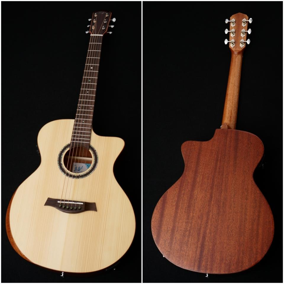 カッタウェイボディ&オリジナルPUを備えたエレアコ仕様で、初めての1本からステージユースまで対応可能です。