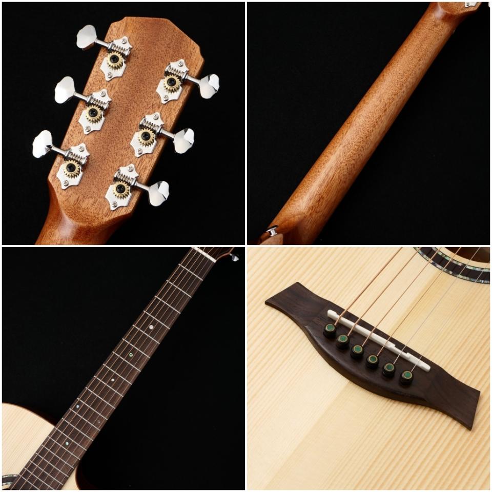 トップにはスプルース単板を使用しサイド&バックにはマホガニーと、アコギの中では非常にオーソドックスな材の組み合わせとなっております。