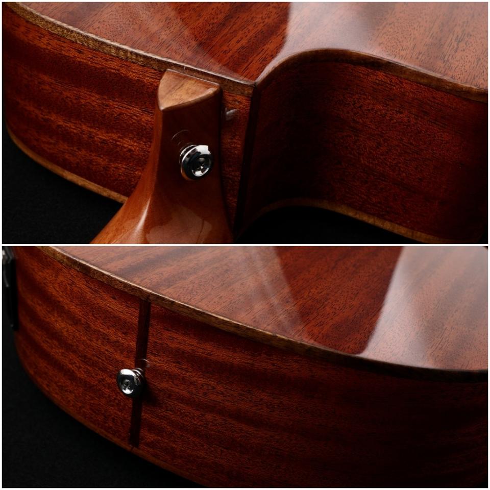 ベベルド・アームレストと呼ばれるボディの面取り加工を行う事で華やかなルックスと優れた抱え心地で快適性を高め、生鳴りの魅力を活かしつつクリアで存在感あるサウンドを実現しています。