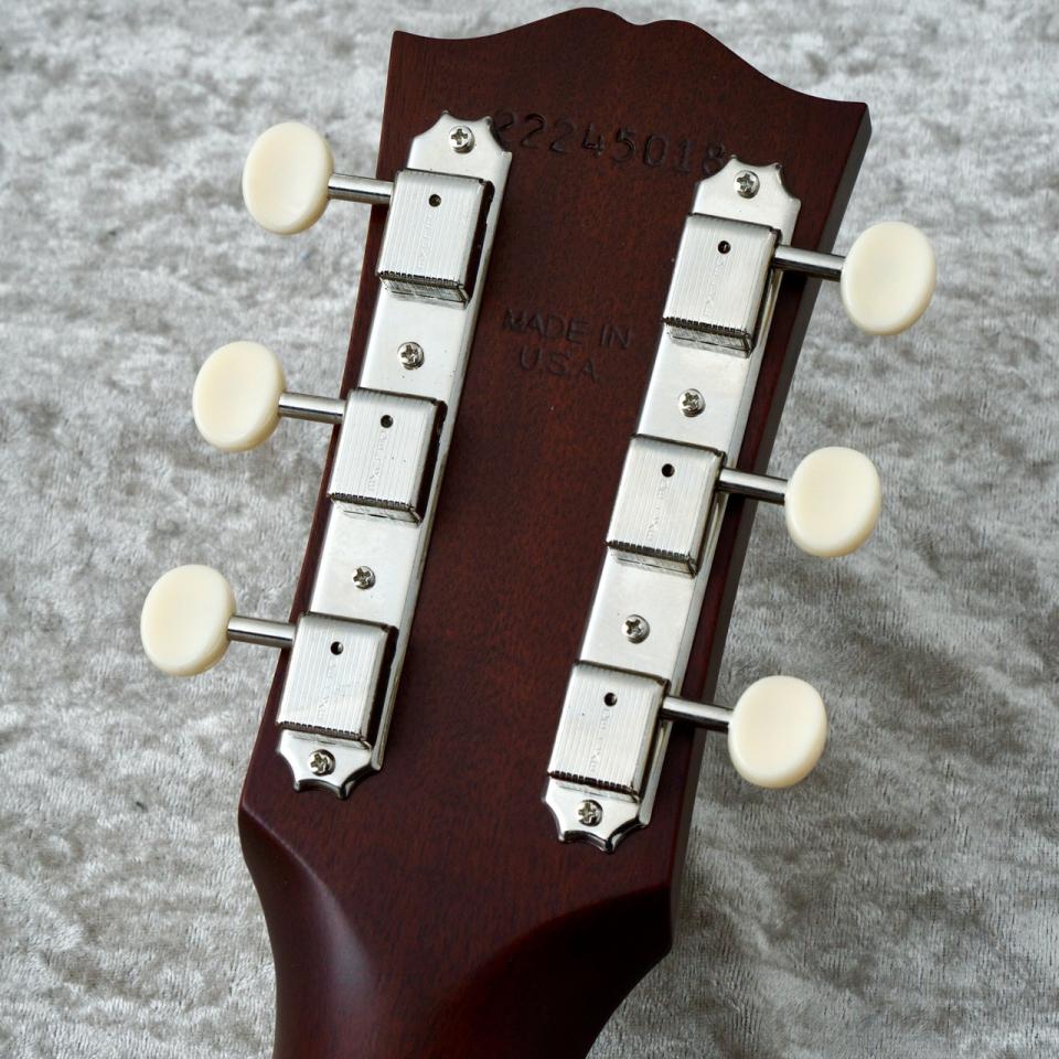 Grover製のストラップ・チューナー(3連のホワイトボタン仕様)は安定したチューニングを実現し、ティアドロップ型ピックガードとともにヴィンテージモデルの魅力を高めています。