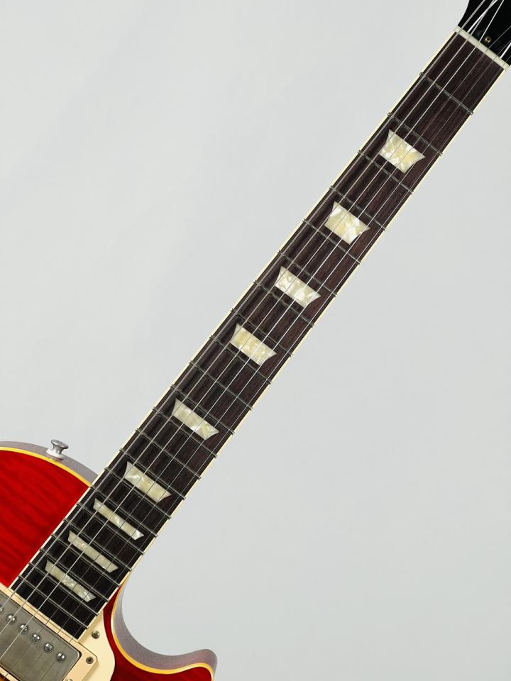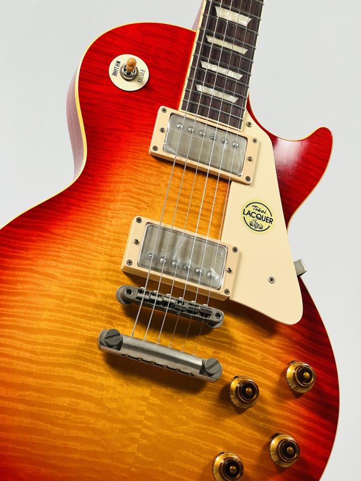 カラーリングには王道の「Cherry Sunburst」が採用され、鮮やかな外周の赤とボディバックのチェリーカラーはやはり非常に格好良い仕上がりです。