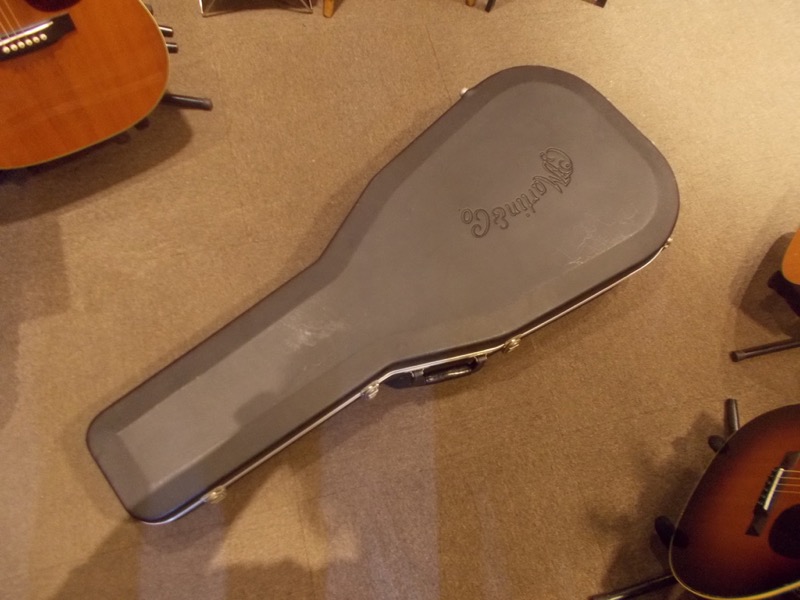 フレット及びサドルの高さにも十分余裕があり、ネックコンディションも良好です。表板には経年変化による日焼け、打痕や擦りキズは見られますが、クラックはございません。ブリッジ周りに塗膜浮きがございますが、ブリッジの浮きはございません。エンドピンジャック加工跡もなく、オリジナル性高くコンディション良好な個体と言えるでしょう。オリジナル・チューナー、ピックガード、ブリッジ、フィンガーボード、フィニッシュ、ハードケース。後付けでネックヒール部ストラップピン装着済み。当店工房にてバインディングの剥がれ補修並びにネックリセット済み。