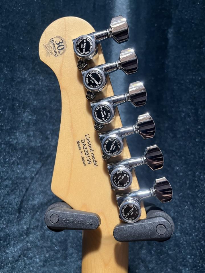 また2点支持トレモロやロック機構付ペグ、カーボンナット等を装備したモダンな仕様。