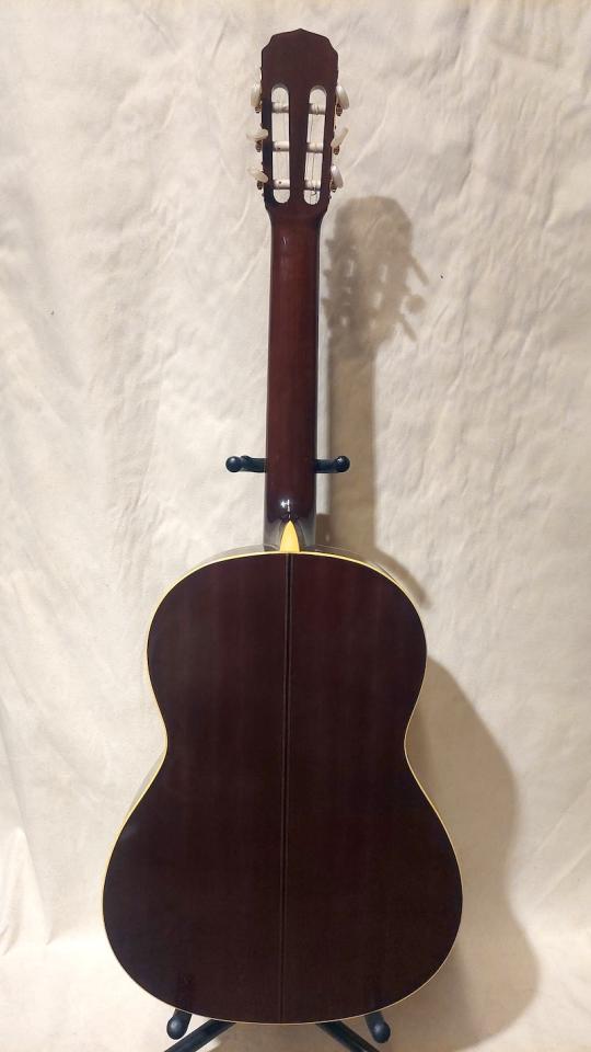 基本的には普通のガットギターなのですが、ネックサイドのバインディングやポジションマーク等が独特の雰囲気を出している一本です。