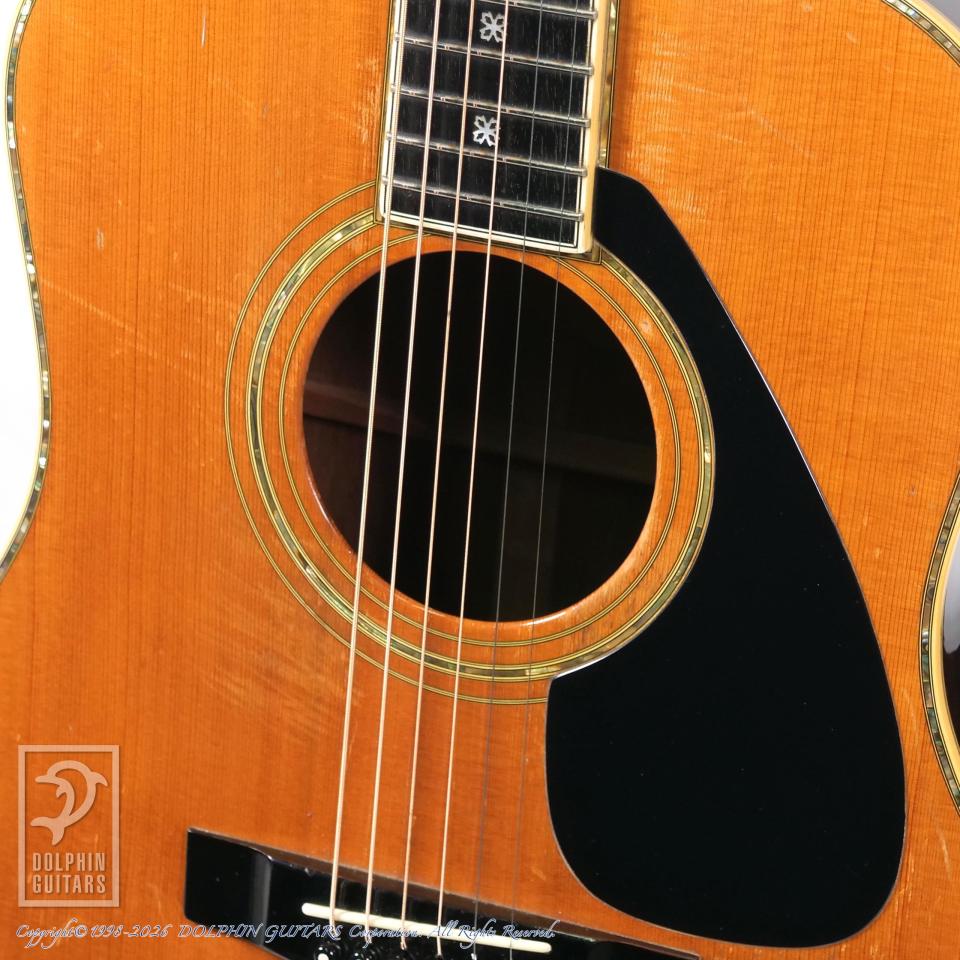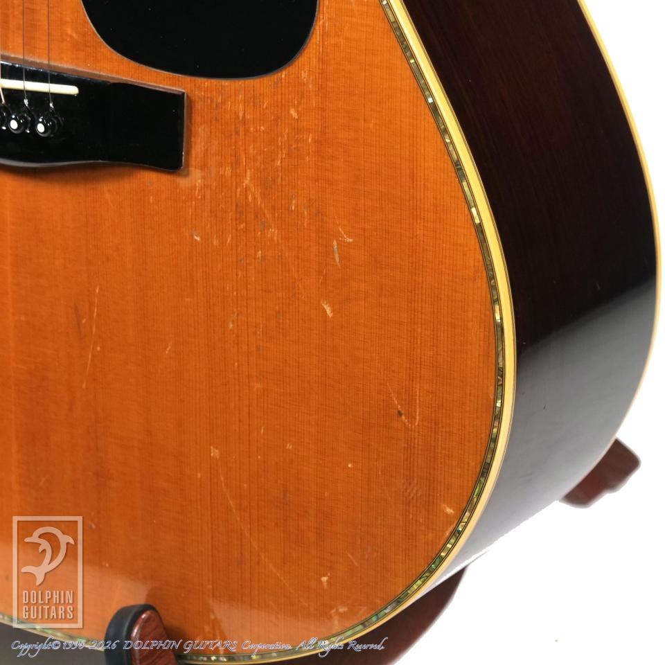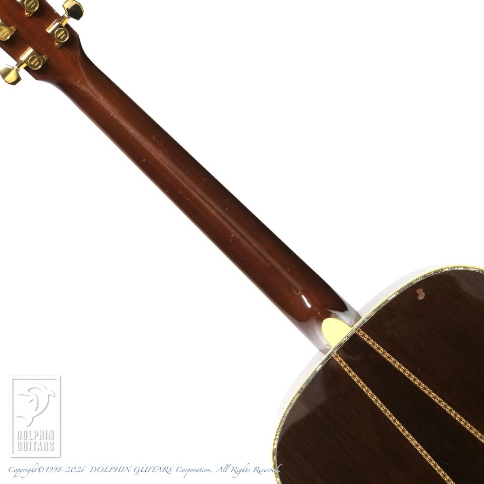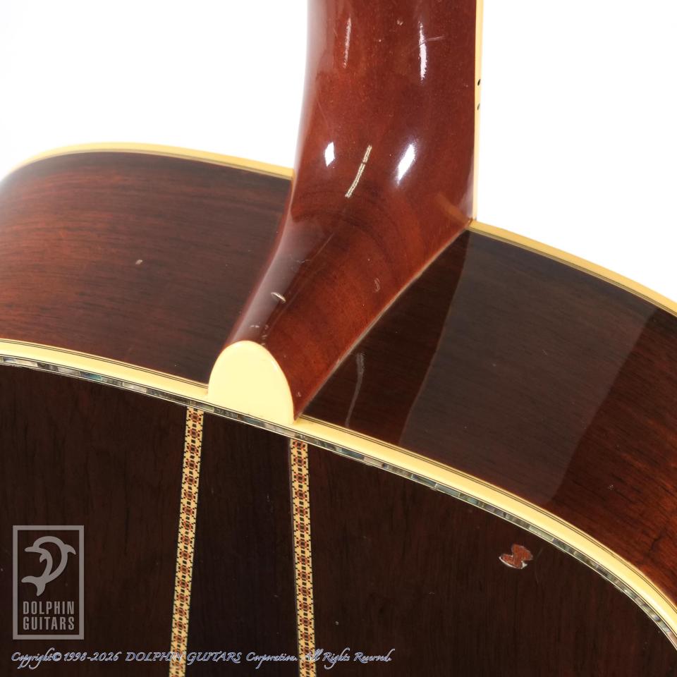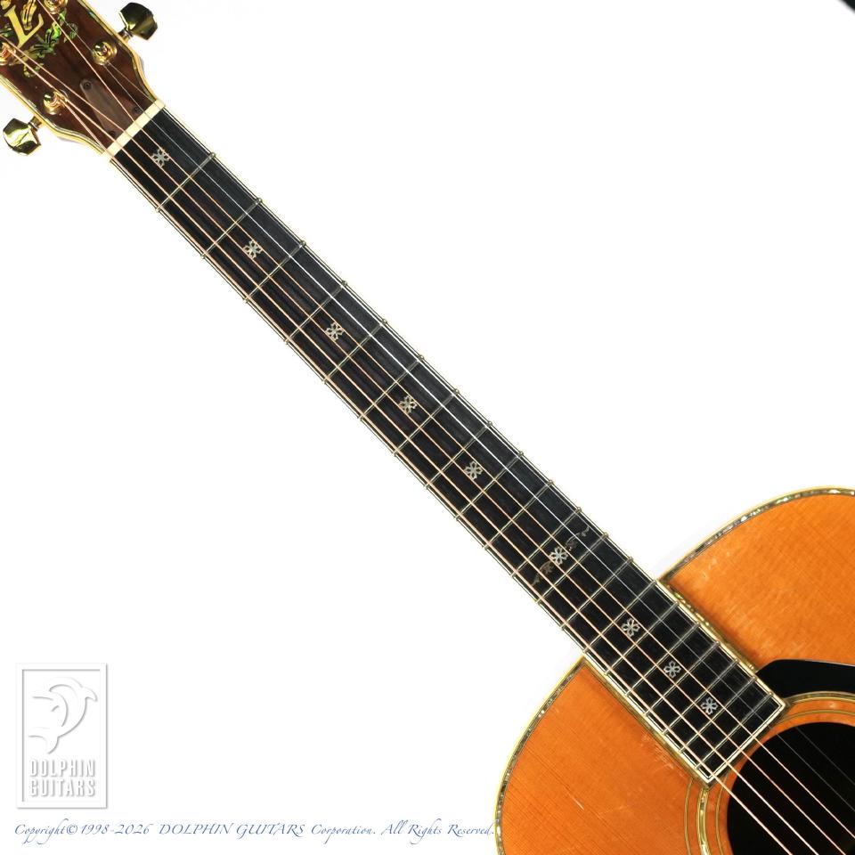 3ピース構造のハカランダ単板にエゾ松の単板トップ、贅沢なマテリアル構成に、ヘッドストックには、当時の最上位機種であったLL-55D Customと同様の「L」インレイを配置し、トップにはアバロンパールによるパーフリングとロゼッタを装飾。華美になりすぎない、品格のある高級感を漂わせた佇まいが魅力です。