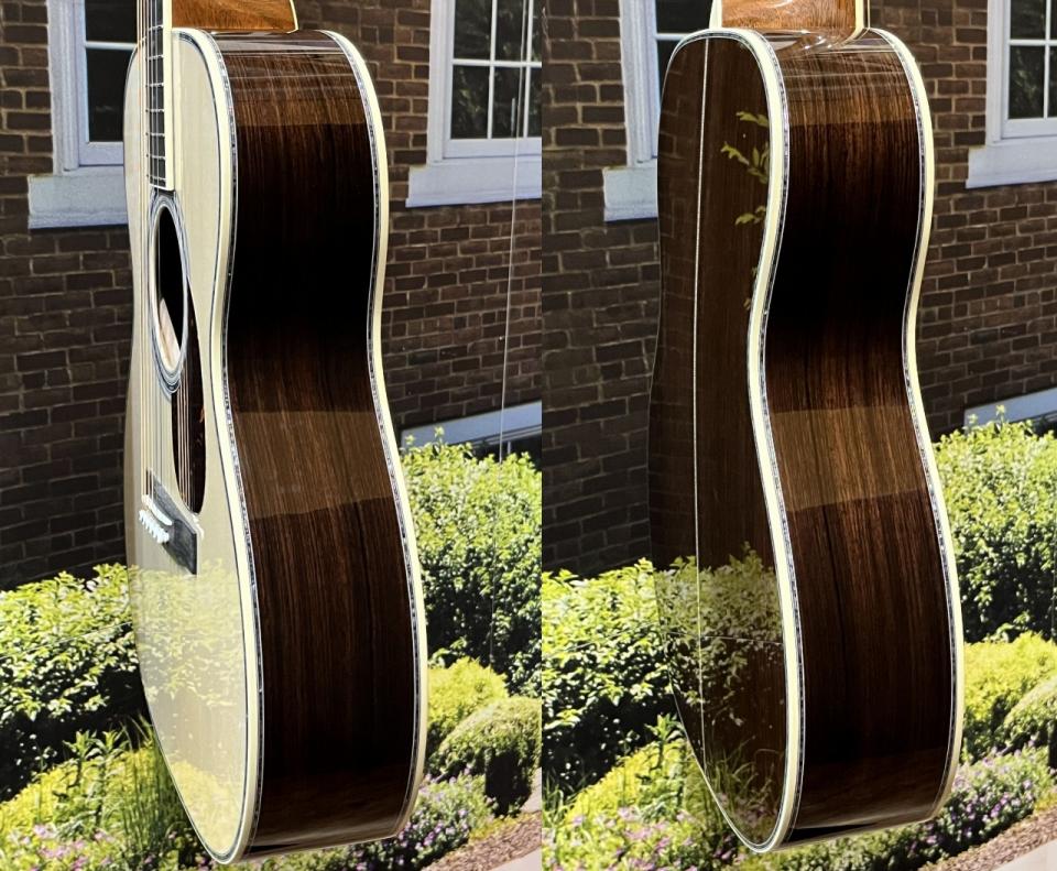スタイル45のOMサイズをベースに、トップにプレミアムグレードのアディロンダック・スプルース材を、サイド&バックにも、プレミアムグレードのインディアン・ローズウッド材使用したカスタムモデル。