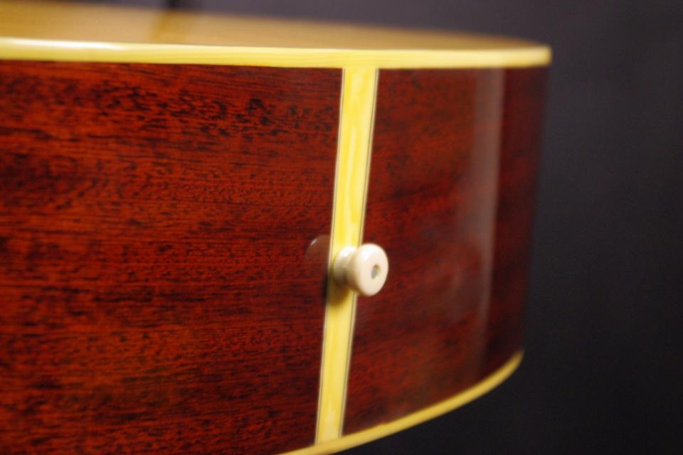 トップ スプルース単板、サイドバック マホガニー単板、指板・ブリッジ ローズウッド、ネック マホガニー、オリジナルチューナー、ダイヤモンドポジションインレイ、オリジナルべっ甲柄ピックガード、スキャロップドXブレーシング、
