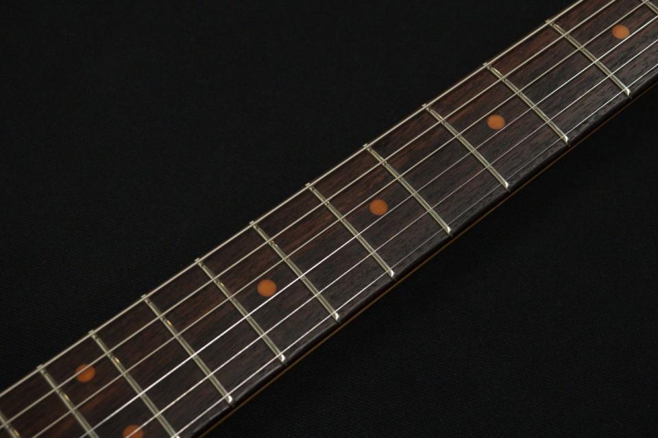 フレット残りも8~9割と良コンディション。トラスロッドの動作も良好です。ボリュームポットにわずかにガリがございましたが、パーツクリーニングにより現状症状は落ち着いています。