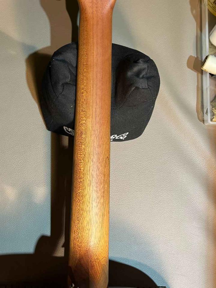 ボディにはトップ・サイド&バックすべてにサペリ単板を採用したオール単板仕様です!