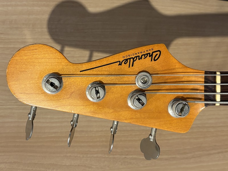 Chandlerのジャズベースタイプのモデルですが、一般に量産されたモデルとは以下の相違点があります。