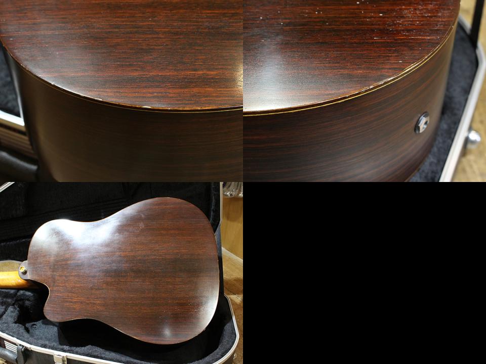 使用感あり。塗装割れ、曇りあり。と使用感はございますがナットが低く調整されているので、弦高はエレキ並みに低く、プレイアビリティは良好です。