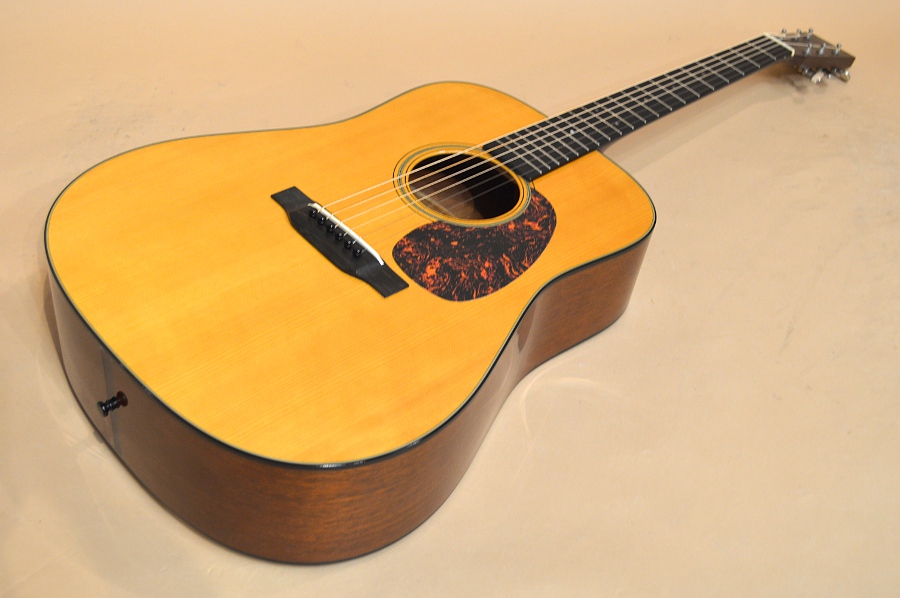 アディロンダック・スプルースTOP、ジェヌイン・マホガニーSIDE&BACK、マホガニーNECK、エボニー指板&ブリッジ、フォワード・シフト・スキャロップ・ブレーシング、実測44.7mmナット、25.4インチ・スケールの1934年スタイルのD-18。