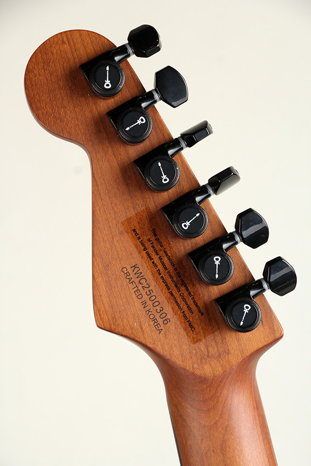 洗練されたデザインのアルダーボディに、グラファイト補強ロッドを内蔵したボルトオン式キャラメライズドメイプルネックを採用、ヒールマウントされたトラスロッド調整ホイールにより、素早く簡単にネック調整を行うことが可能です。薄めの"D"シェイプネックには、22本のステンレススチールフレットを配した12?16インチコンパウンドラジアスエボニー指板を採用し、コード弾きから高速のリードプレイまで、ネックの全長に渡り優れた演奏性を提供します。