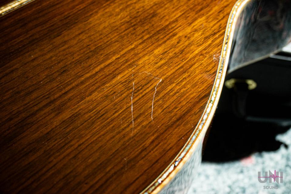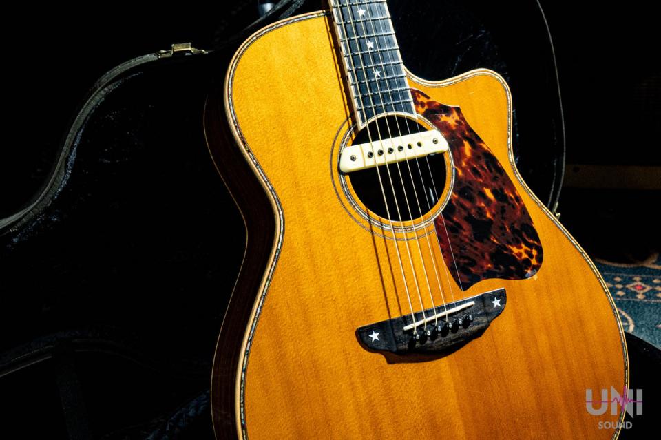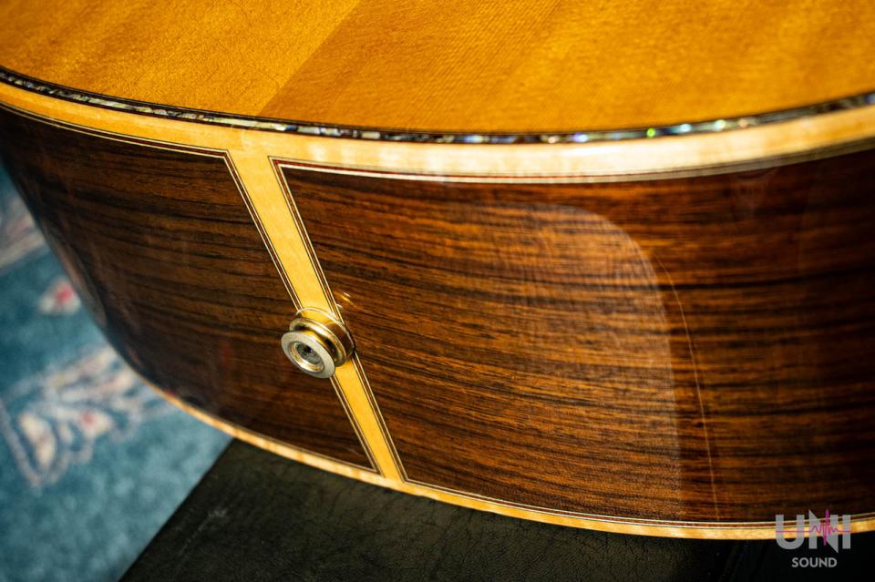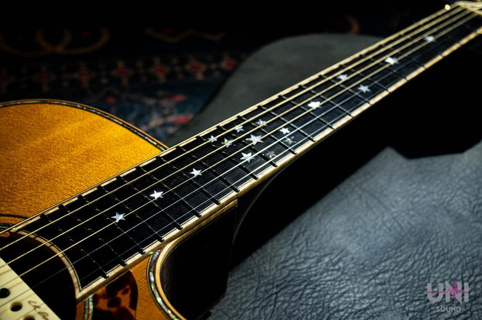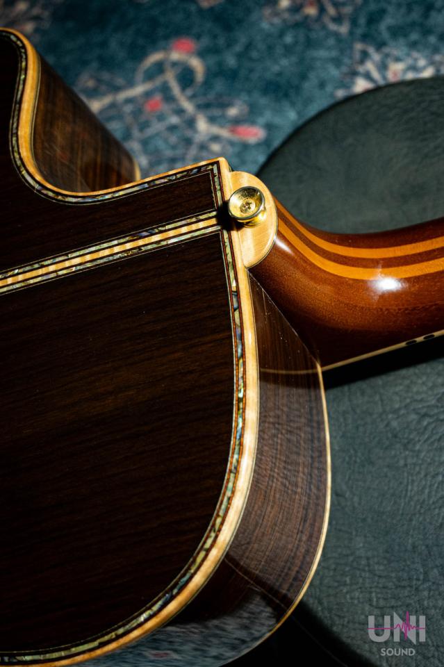 トップはスプルース単板、バックとサイドはインディアンローズウッドを使用し、指板、ブリッジはエボニーです。
