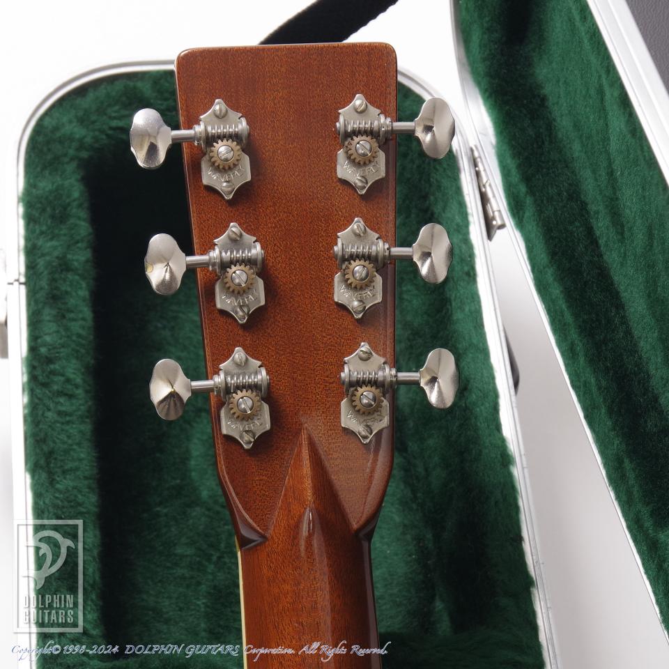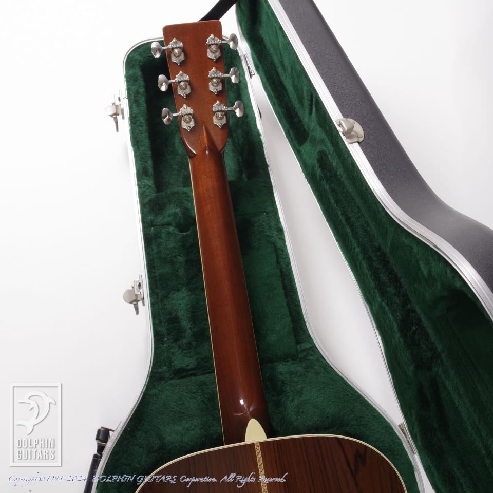 ネックリセット以外のリペアは見られず、バインディング剥がれも見られません、もちろん木部もノークラック。パーツは全てオリジナルであり、大変希少価値の高い個体であります。ハカランダの迫力のある木目と、黄金色に輝く上質なイングルマンスプルース、色鮮やかなアバロントリムなど、この美しさはやはり本家マーティンでしか見られません。