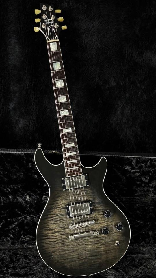 美しいフレイムメイプルトップのマホガニーボディに、ローズウッド指板を組み合わせたマホガニーネックのウッドマテリアル。厚みのある重厚なルックスながらも約3.12Kgと、とても肩や足腰にジェントルなギターでございます。