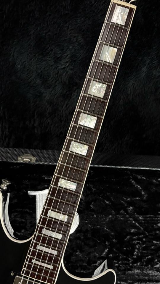 そして、しっかりと厚みがありながらも軽量なマホガニーボディとの相性がまた良く、トーンを絞りつつ甘さを出せばジャズに、ドライブさせて歌ものやロック等に合わせることもできてしまいます。トラッドなサウンドながらも解像度が高めという、まさにこのギターにしか出せない特色が出ております。もっと深胴のホロウと比較すればスッキリとして扱いやすく、ソリッドのセットネックモデルと比較すればよりふくよかに、というキャラクターとなりますので取り回しの良いホロウボディをお探しの方にはぜひ手に取っていただきたい1本でございます。