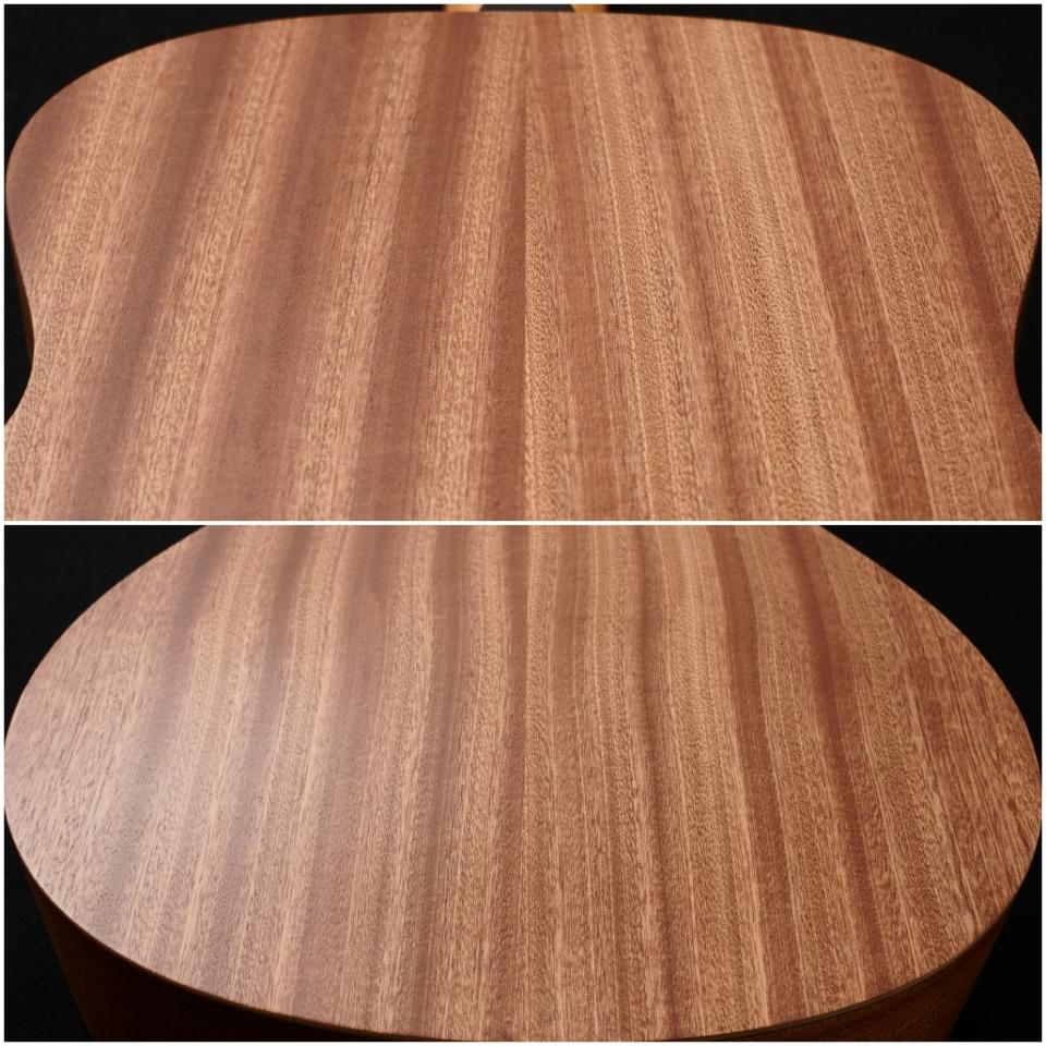 トップにはトリファイド加工が施されたスプルース単板、サイド&バックにはサペリ材を使用。