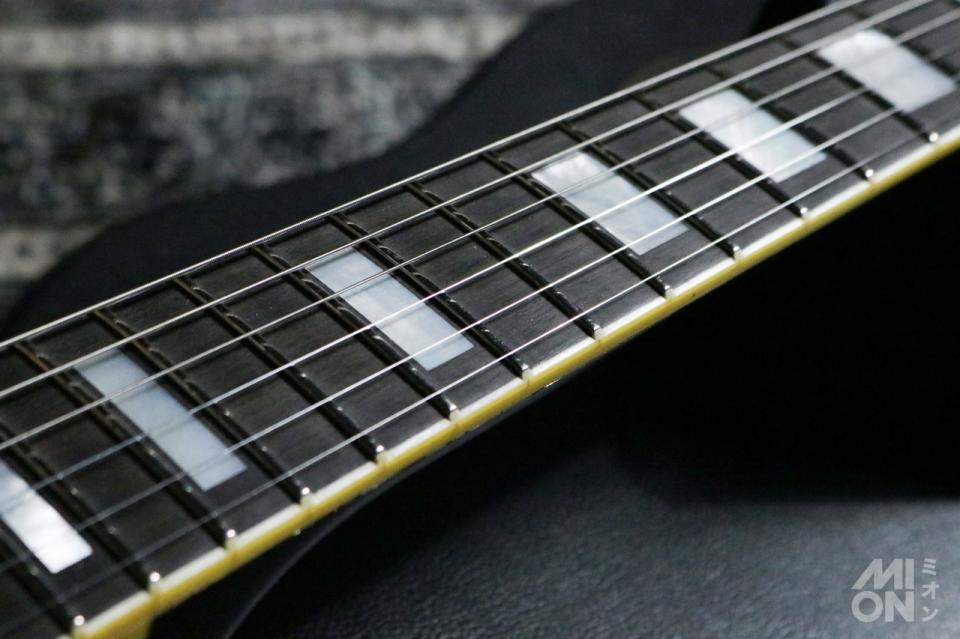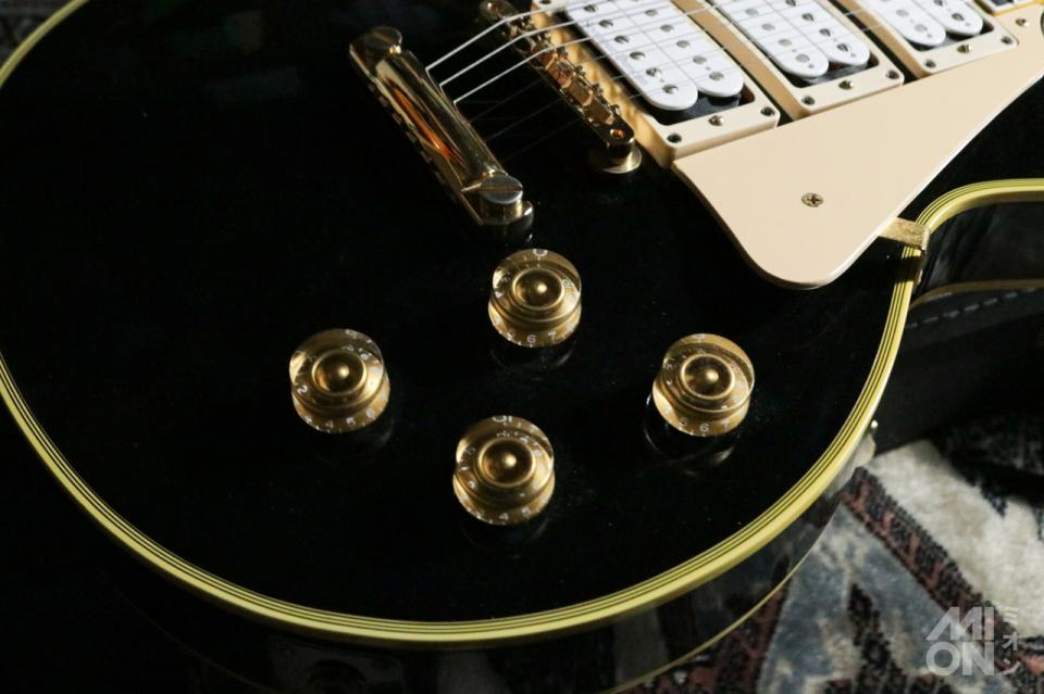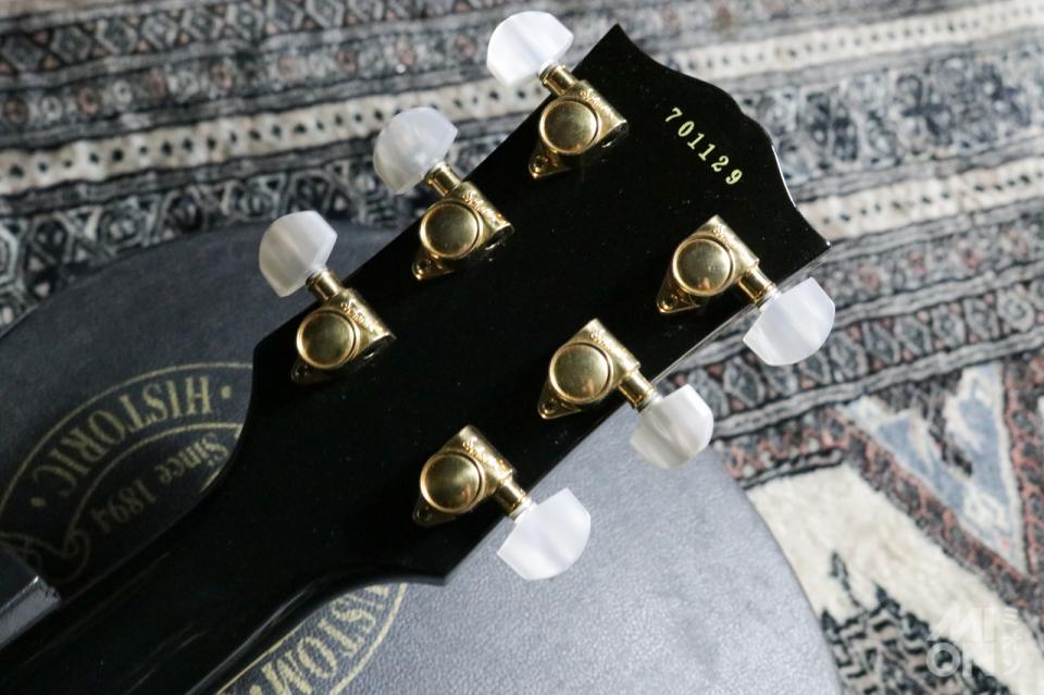 シャーラー製のペグ(変更されています)など、ハードウェアはゴールドカラーで統一され、それとボディのエボニーカラーの組み合わせで「ブラック・ビューティー」と呼ばれる圧倒的なルックスを実現。