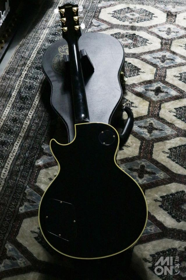 レスポールの中でもユニークな、一枚の大きなマホガニーから削り出されたオールマホガニー・ボディによる中音域のトーンと、ブライトなサウンドのエボニー指板とが相まって、この時代のカスタムならではの独自のサウンドになっています。