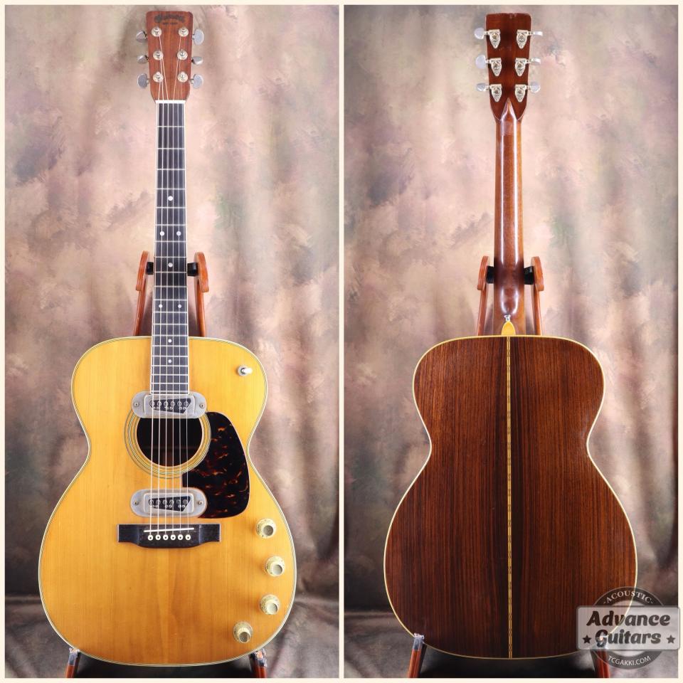 ラインナップはD-28E、D-18E、00-18Eの3品番のみ生産されましたが、本機は1970年の000-28をベースにマグネティック・ピックアップを搭載させた1本です。