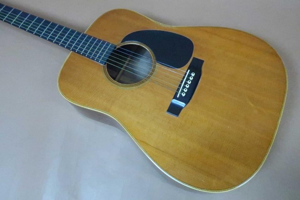 クラレンス・ホワイトからトニー・ライス氏へ受け継がれたD-28のラージ・サンドホール仕様のカスタム・モデル。オールド・スタイル・デカールロゴ、マホガニーワンピース期の希少なカスタムモデル。訳あり特価品