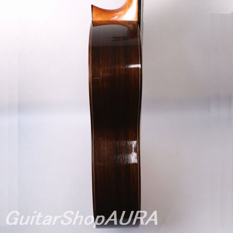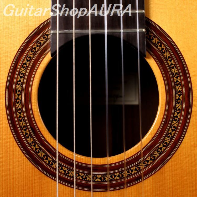 コルヤ・パンヒューゼン 2001年製作 Usedの入荷です。のちにはラティスブレーシング(格子状力木)構造などのモダンな工法においても高い成果を上げることになる彼の、伝統的スタイルからの移行期とも見てとれる設計で作られたモデルです。ここでパンヒューゼンはまさしくスパニッシュ的要素とメンヒ的(ドイツ的)な要素とを無理なく融合させながら、独特かつ自然な方法で彼自身の音響へと着地させるとともに、現代の演奏者のニーズに十全に応える極めてバランスフルな1本として完成させています。