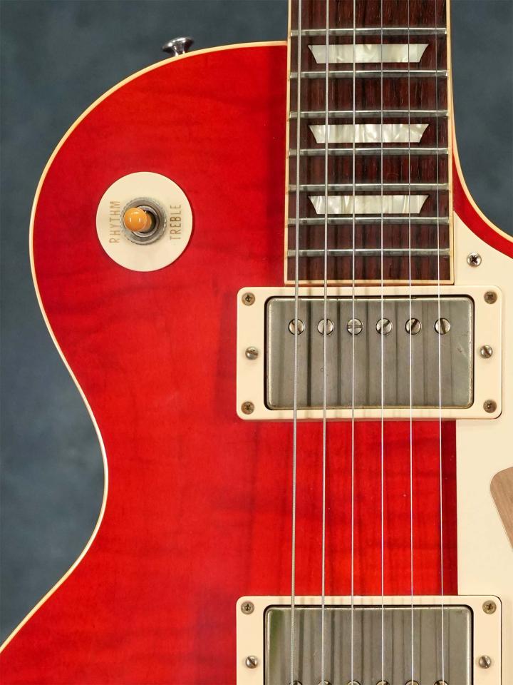 うっすらと杢目の出たライトフィギュアドメイプルTop&マホガニーBackのボディ、しっかりしたグリップのマホガニーネック、ローズウッド指板。2013年は1993年に設立されたGibson Custom Shopの20周年を記念してHistoric Collectionへ大幅なモデルチェンジが行われており、ピックアップはフロント&リア共にCustombucker(ポッテッド)を搭載、チューブレスのトラスロッド、鉄製のロングスタッド&インサート等、現行モデルにも通じる仕様が採用されています。