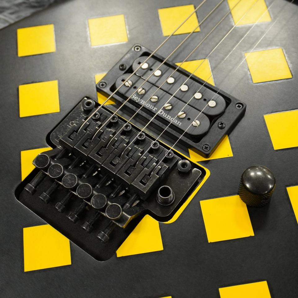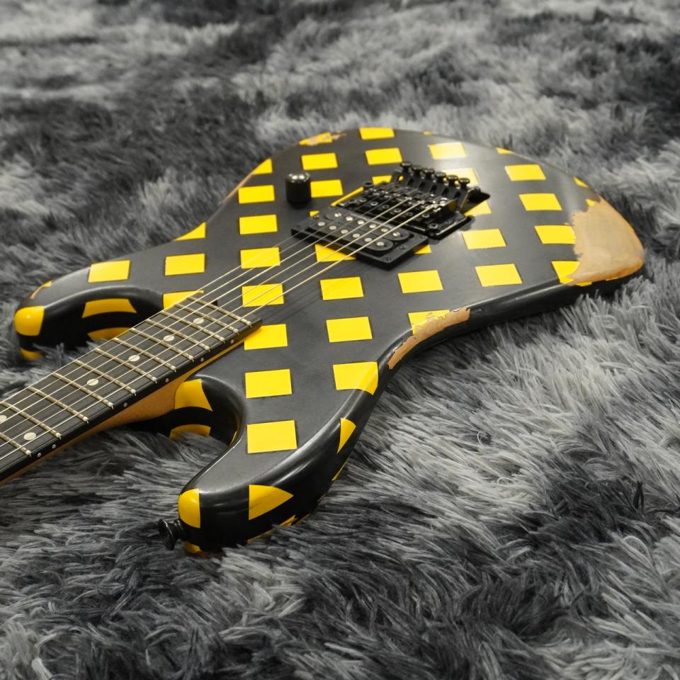 ディストレス加工が施されたブラックのニトロセルロースフィニッシュに、イエローのダイヤモンドパターンが映えるこのルックスは、まるで数え切れないほどのライブステージをこなしてきたような、厳かな風格をまとっています。