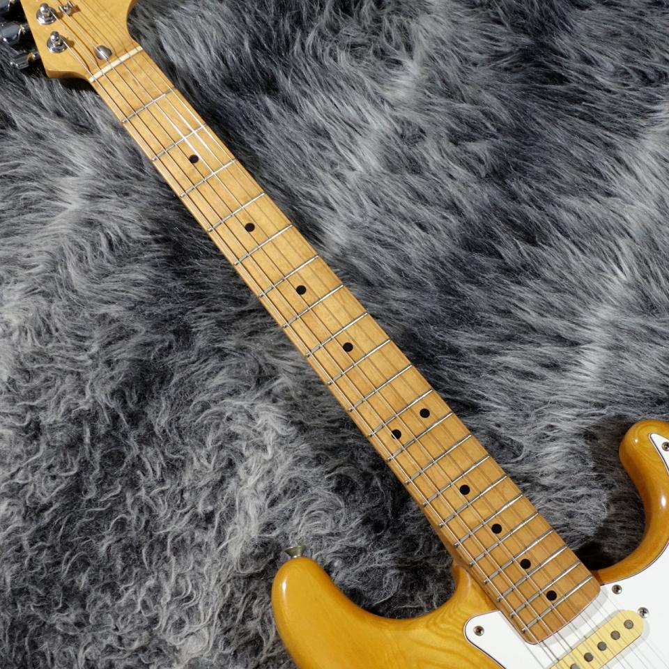 ナチュラルカラーにメイプルネック&指板、ラージヘッド&3点止めジョイントの70sスタイル。