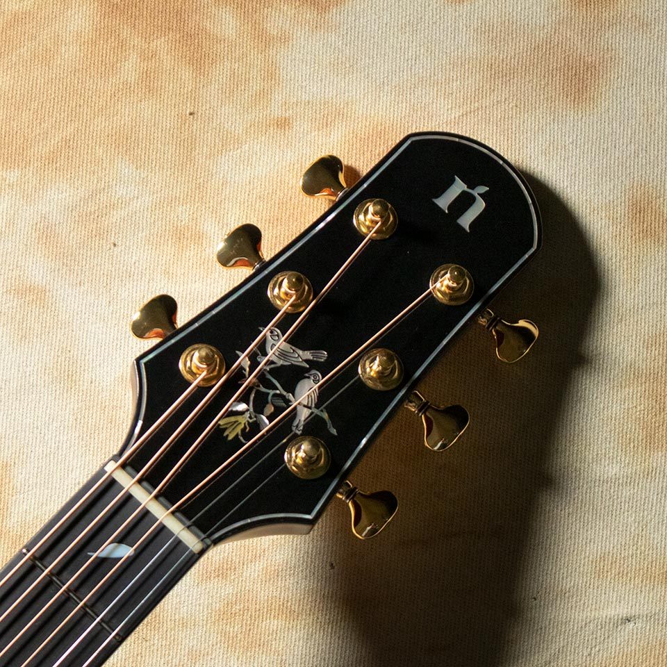 ヘッドの鳥から舞い散るような印象の指板インレイも加工技術の高さが伺えます。