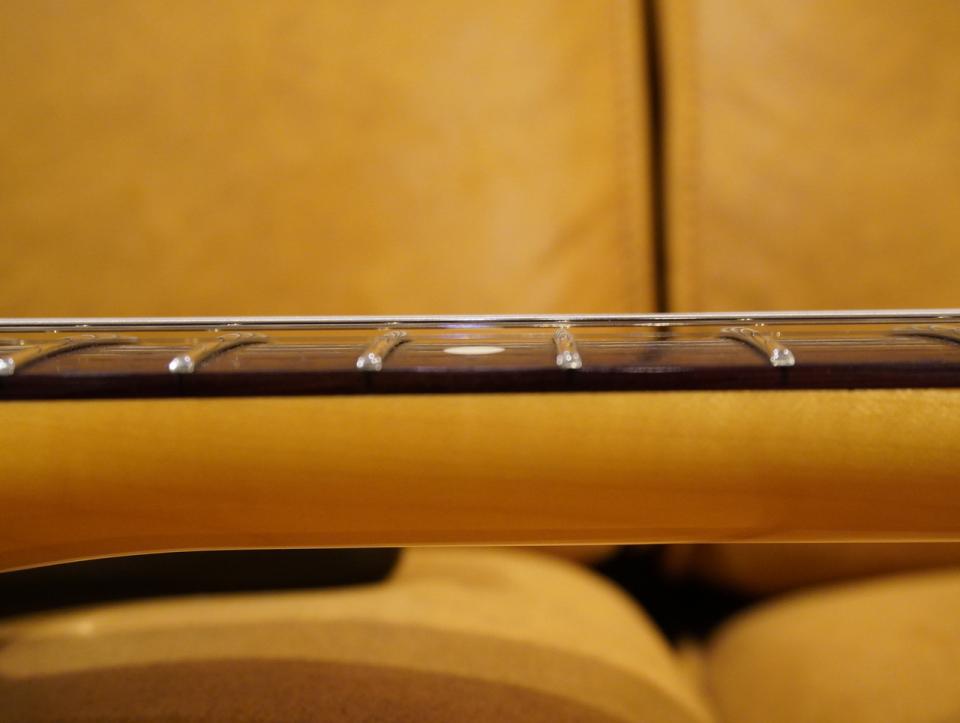 フレットは特定の部分のへこみなどは無く、演奏性に問題ない状態といえます。