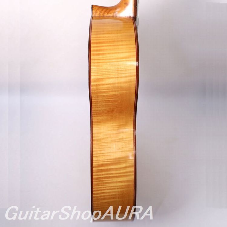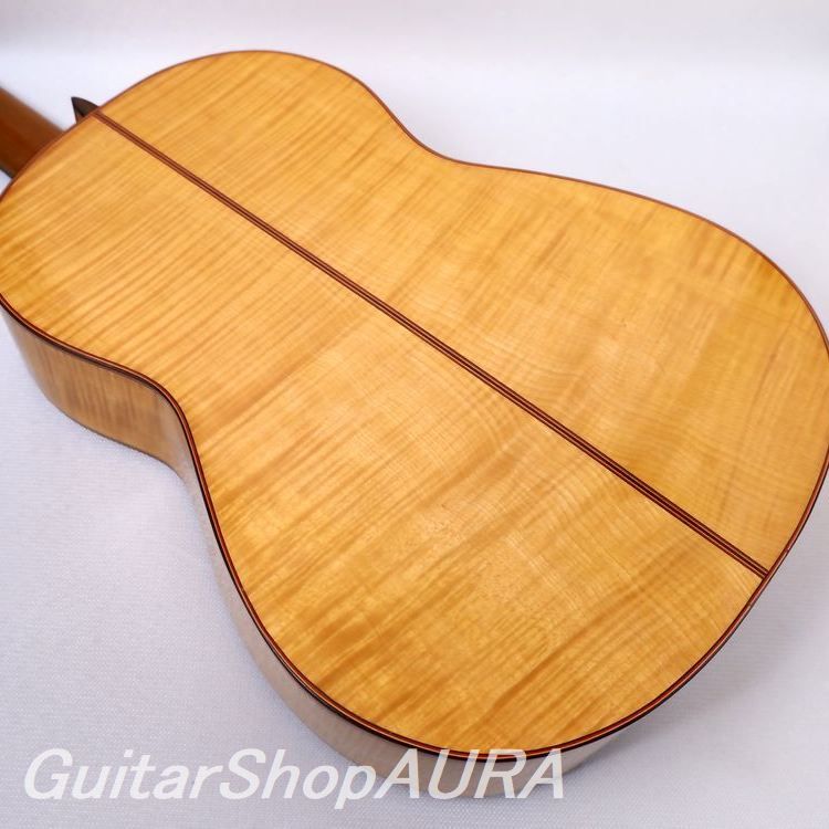 A rare example from this period, this 1940 flamenco guitar features beautifully figured flamed maple back and sides—an uncommon choice for the brand. Built by the young Conde brothers in their twenties, it closely follows Esteso’s original design in both construction and aesthetic.