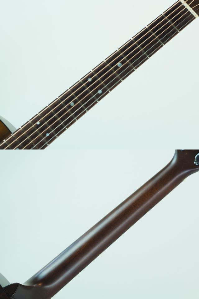 シトカスプルーストップとマホガニーサイド&バックを総単板で使用し、低いところから湧き上がるエネルギッシュな響き、マホガニー特有の良い意味で洗練されていない土臭い感じ、適度に乾いた甘いトーンは伴奏に最適なキャラクターです。