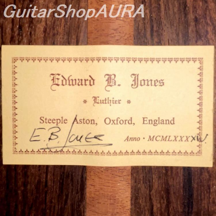 Edward B. Jones is a British luthier based in Steeple Aston, Oxfordshire. He began his career not in guitar making, but in the construction of harpsichords and clavichords under Robert Goble, gaining a strong foundation in precision craftsmanship.