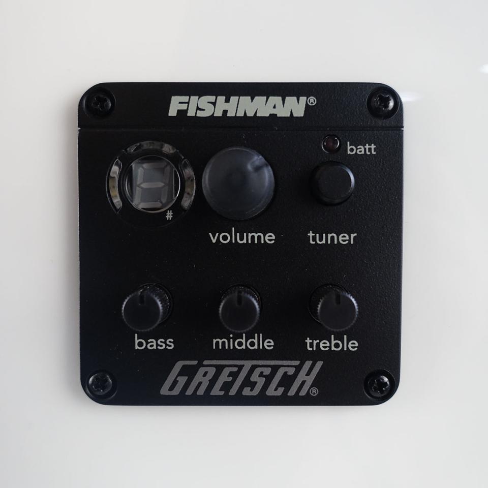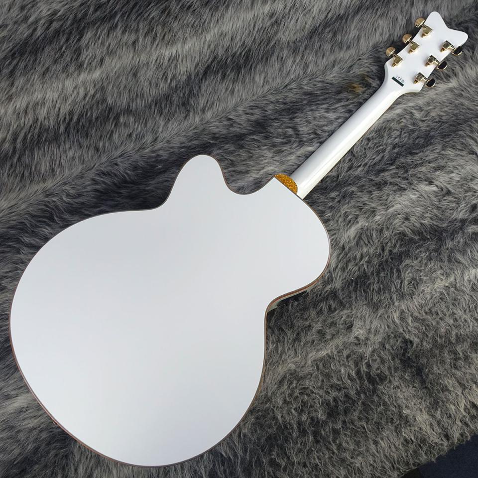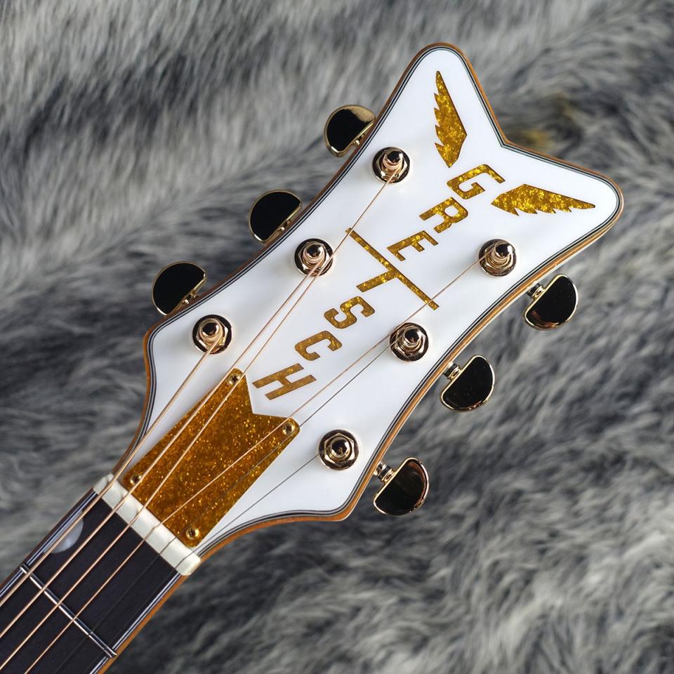 その他のプレミアムな仕様に、スキャロップドXブレイシング、クラシックなランチャータイプの三角型サウンドホールを備えた、ソリッドスプルース・ボディトップを使用。ボディ・サイドとアーチ状のボディ・バックにメイプル材を使用し、マホガニーネック、Neo-Classicのサムネイル・インレイを装備した、21フレット仕様のローレル指板を採用。翼の付いた"Gretsch"スパークルロゴが入ったV字型ヘッドストック、ローズウッド台座付きコンペンセーテッド・ブリッジ、デラックスチューナー、金メッキされたハードウェアを採用しています。