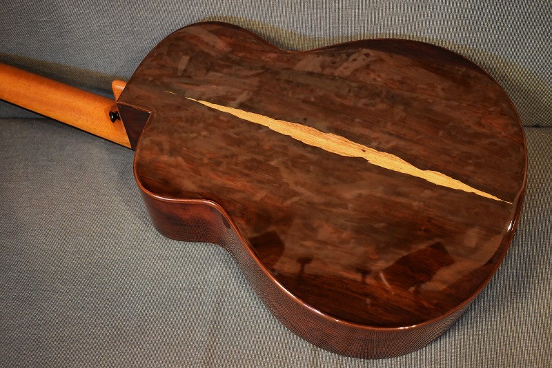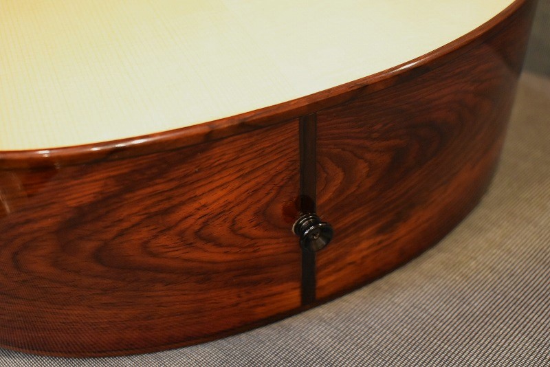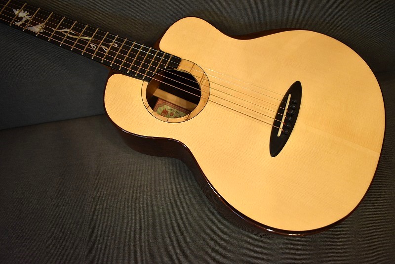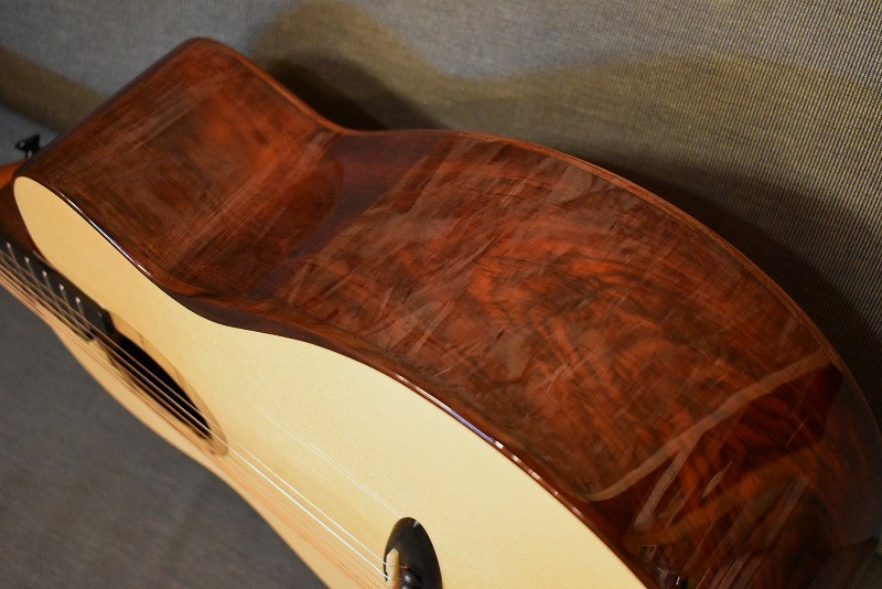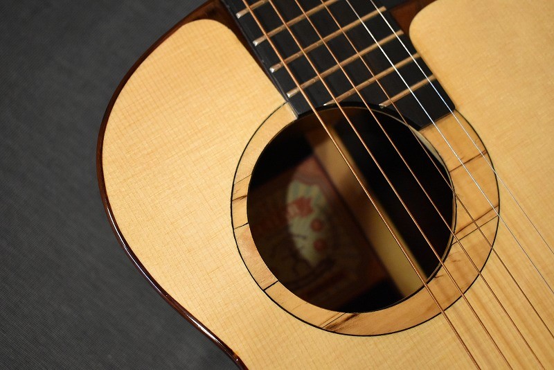 トップにはスイスムーンスプルース、サイド・バックにはサップの入ったココボロが使用されており、