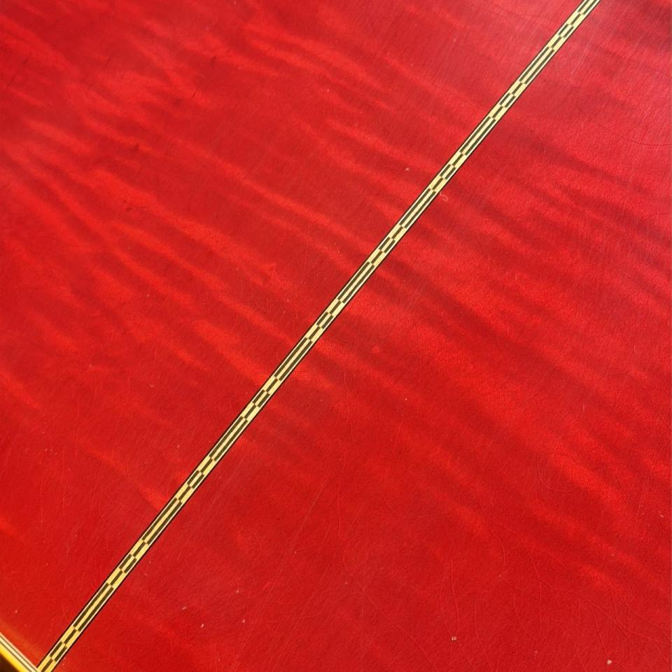 サイド&バックには美しいチェリーカラーで仕上げられたフレイムメイプルを使用。