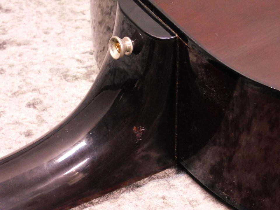 サウンドホール右上、ピックガード横に小さいクラックがありますがリペアされており問題ありません。