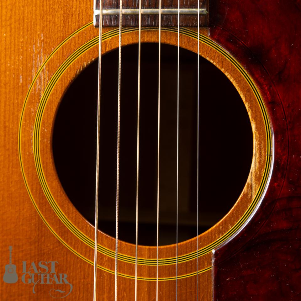 サウンドは、しっかりと中低音が出ていて、高音もきれいですし弾いていてすごく気持ちが良い個体です。ストロークのキレ、リバーブ感、ボディ鳴りと申し分ないです。フィンガースタイルは、色気があって良い音がします。そしてストロークしたときの爽快さもグッドフィールです。歴代のプレイヤーに弾かれ、時を経て枯れて艶が出たサウンドは、味わいがあってやはり特別なものがあります。ケースにつきましては、掲載のヴィンテージのギブソンハードケースが付属いたします。
