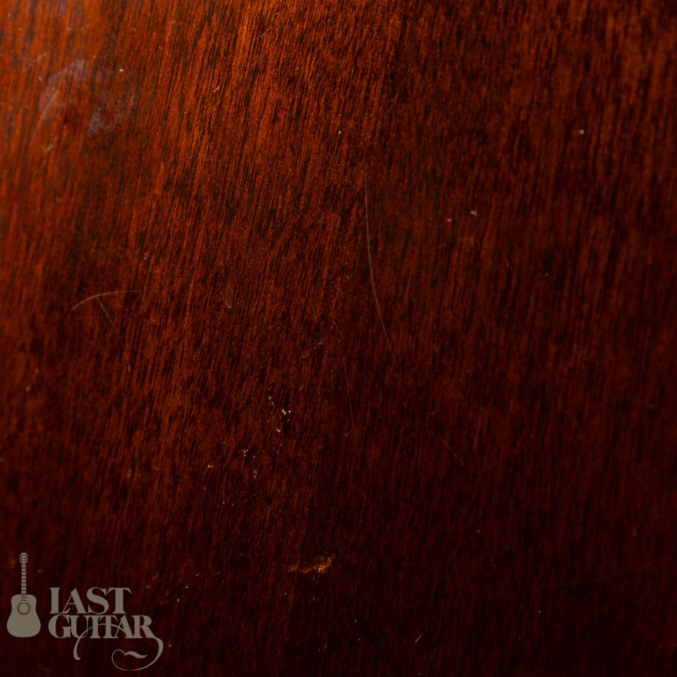 本機は、1964年製、レギュラーネック仕様最終期のJ-50です。トップは、目の詰まったきれいなシトカスプルースで、経年により濃く色づいていて、きれいに細かくウェザーチェックが入るなど、何とも良い表情をしております。また明るい厚みのあるピックガードも、独特な雰囲気を持っていてとても良いですね。