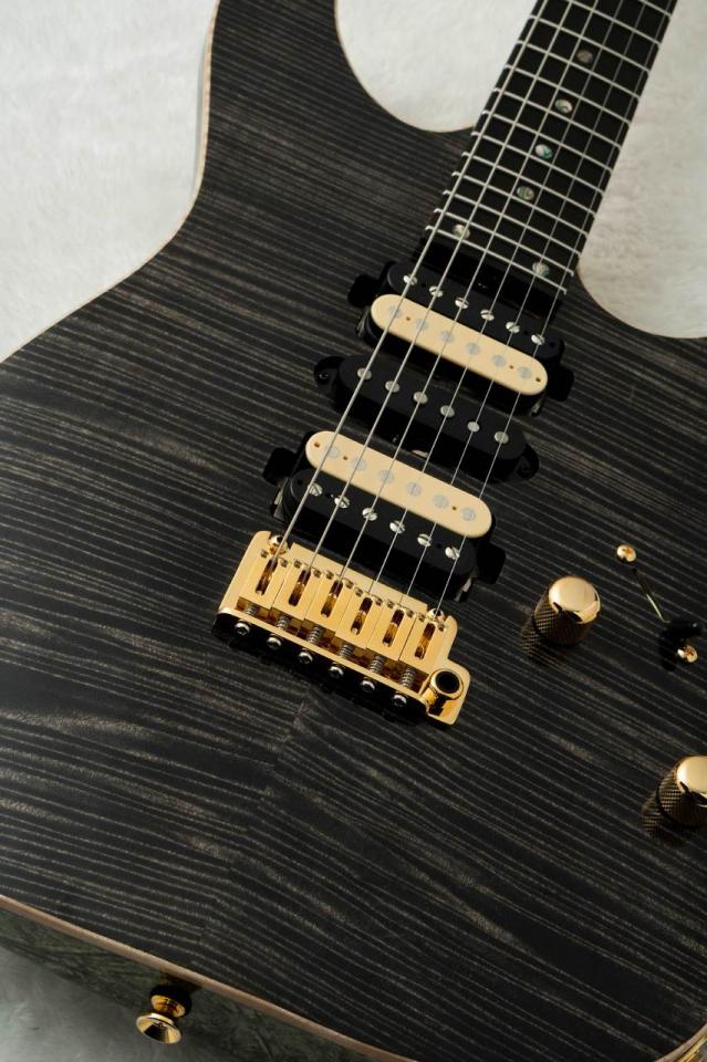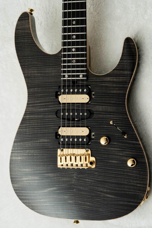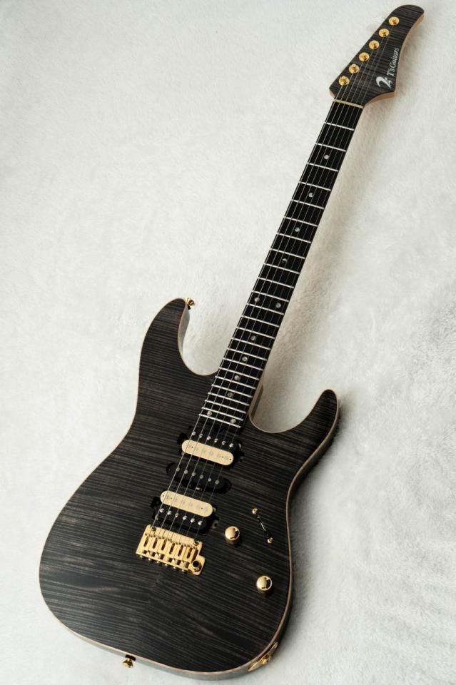 細かく深みのある杢目を持つフレイムメイプルに、カラーリングにはTrans Blackを施しました。