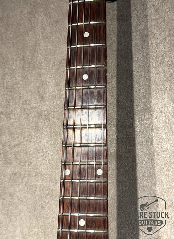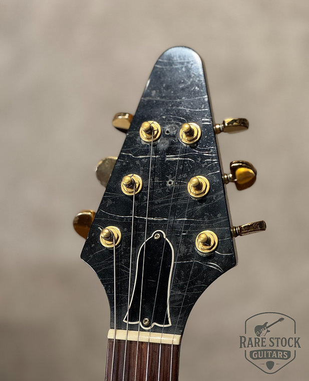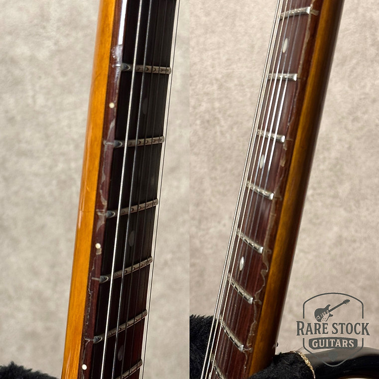 一般的に目にするレプリカは58年モデルを意識した仕様となりますが、こちらのギターは80年代ヘリテージ期のコリーナVを連想させるルックスです。