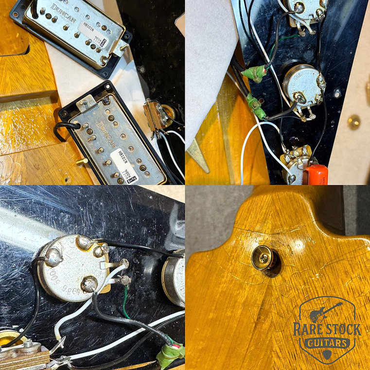 通常ヘリテージモデルのボディはネックと並行した木取ですが、こちらの個体は58年同様に八の字の木取で2ピース構成です。