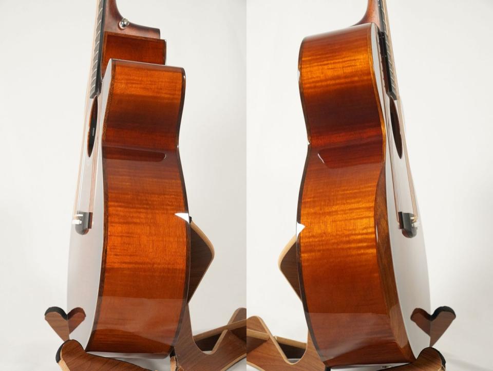 小ぶりなボディながら、ドレッドシェイプよりもやや深いボディ厚が特徴でふくよかなボディ鳴りを感じ取れます。